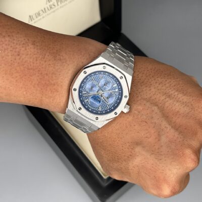 ساعت اودمار پیگه ست نقره ای صفحه سرمه ای Audemars piguet 3292