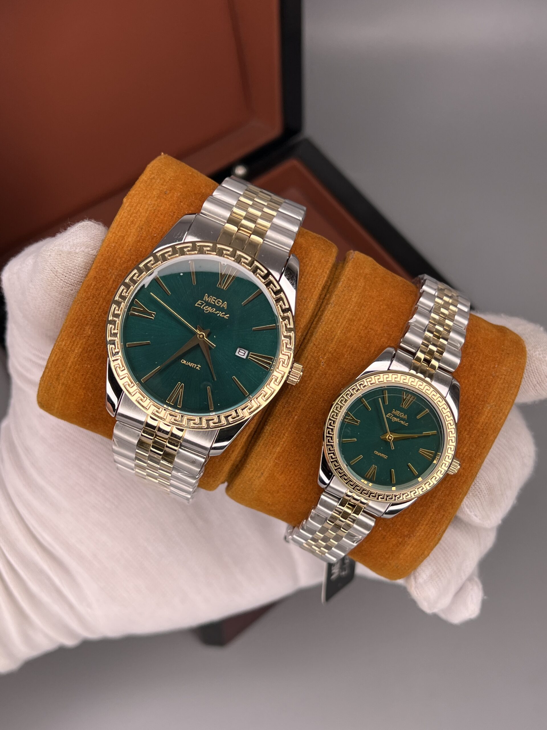ساعت ست کلاسیک الگانس دو رنگ طلایی صفحه سبز Elegance 2635